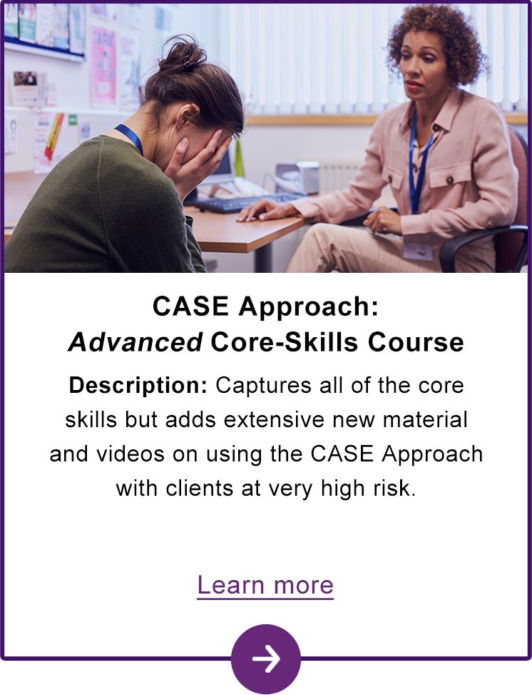 ws clinicians to provide 100% of their attention to engaging the client and looking for nonverbal indicators of withheld secrets - secrets that can sometimes prove to be of life-saving importance. Both the evidence-based CASE Approach and the CASE Approach Online Courses are listed on the federal Suicide Prevention Resource Center’s Best Practices Registry (BPR) for recommended use across the Unites States.